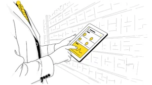 Hand-drawn illustration of a healthcare professional holding a stethoscope, representing clinical mobility and connected healthcare operations